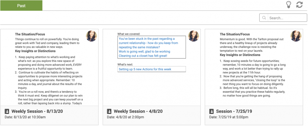 Session Notes are taken by your coach during or after an appointment. These notes are the treasure trove of insights from your session, given to you by your coach. It's always good to revisit Session Notes, as inspiration and nuggets of wisdom from your coaching appointments are often found there.